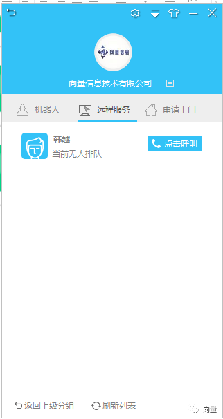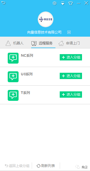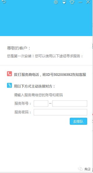 3.客户自助寻求服务,登录软件输入我们为您提供的服务账号和密码,点击寻求服务,选择客户分组,然后看客服是否在线,排队即可。