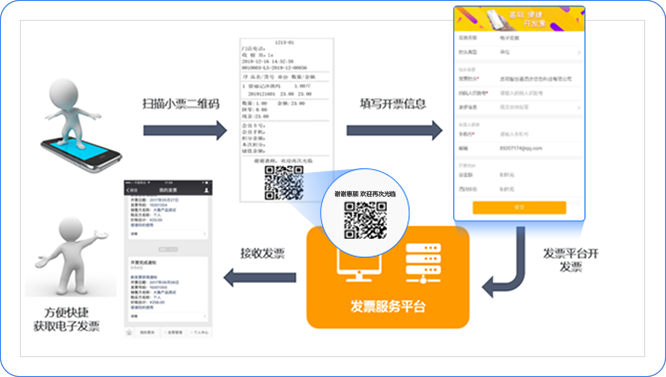 消费者微信扫码开票,支持发票管理与财务核算 ,由消费者通过手机扫描新零售销售小票上的开票二维码,自助开具销售发票。