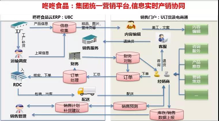 冬冬食品专注休闲零食行业20年,是集研发生产销售一体的民营企业。全国三大生产基地,下辖四个分公司,是云南食品行业龙头企业。营销遍布全国,32 个营销区域,经销商一千多家,电商平台覆盖京东、天猫、小红书等七个平台,销售过10 亿,跨区域多工厂协同,O2O 营销管理新模式。通过数字信息化建设,做到24小时不打烊,38类 212个食品24小时在线销售,732家经销商24小时在线订货,U8 cloud+U订货无缝集成,实现下单、结算、对账零差错。食品品质一追到底,实现品质全过程追溯。