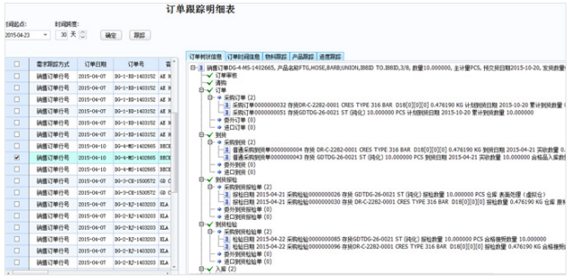 • 销售订单为批次的追踪管理的实现,来强化销售订单所对应的生产、采购业务的进度跟踪管理。